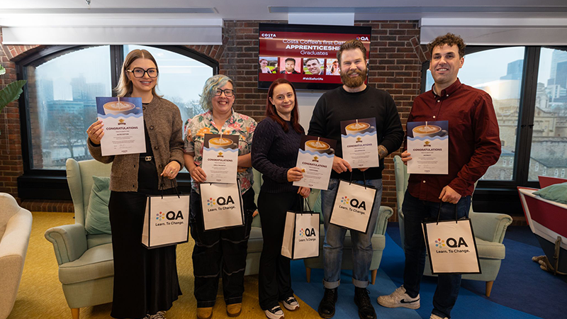 QA and Costa Coffee celebrate first data apprenticeship graduates during National Apprenticeship Week