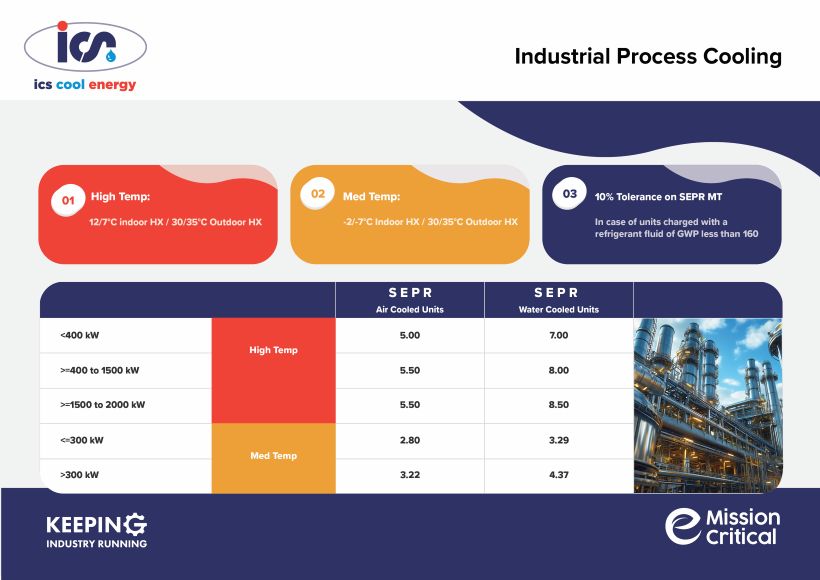It accounts for high load factors and continuous operation, reflecting the true conditions under which this equipment functions. This distinction is important: using comfort cooling equipment in a process environment not only leads to inefficiencies but can also result in non-compliance with regulatory standards. For plant managers, choosing SEPR-certified systems isn’t just good practice, it’s essential and has real impact on the equipment performance, total as well as operational costs of ownerships.